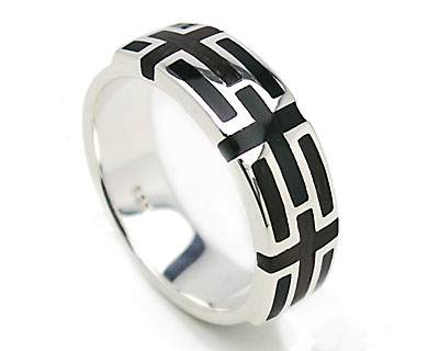 オニキスとウッドを埋め込んだインパクト有るデザイン。ペアリングにも最適です! 重量 7g 最大幅 7mm 素材 シルバー925、オニキス、ウッド
