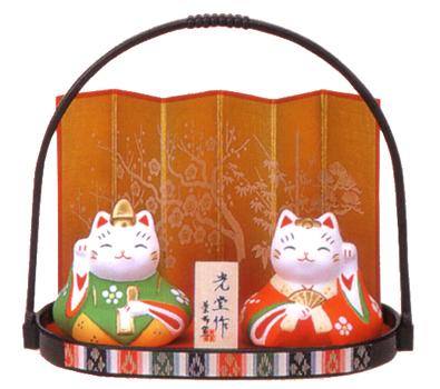 玄関やリビングに♪錦彩手籠招き猫雛(小手籠付)(陶器/雛人形)価格: 1,575円レビュー評価: 5.0 レビュー数:1 男4.5cm・女4.0cm (手籠)高さ11.0×横巾12.5cm こちら、「雛祭りシーズン」を終わると全くといっていいほど売れなくなってしまうため、2月後半にむけ在庫調整しつつの販売となりますのであらかじめご了承ください。 また、『お買い物かご』はございますが、2月末以降になりますと在庫終了商品が多数発生いたしますので完売の場合はご容赦くださいませ。m(_ _)m ※生産調整品につき、お届けまでにお時間をいただく場合がございますのでご了承ください。 玄関やリビングに置くだけで気軽に『ひな祭り』気分が楽しめる♪といった感じでご好評をいただいております陶器の雛人形。本格的なひな人形の場合、3 |